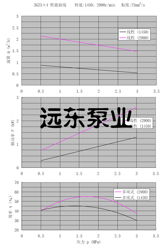 3GR25*4三螺桿泵轉(zhuǎn)速1450,2900r/min,粘度75cst性能曲線圖