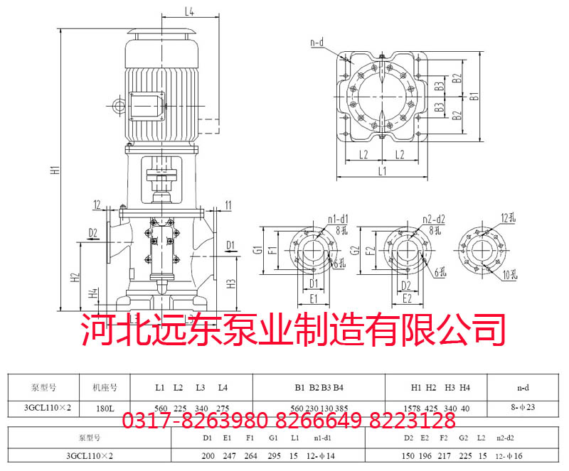 3GCL100*2W21三螺桿泵配180L電機(jī)整機(jī)安裝尺寸圖