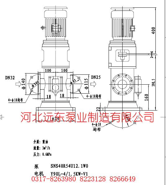SNS40R54U12.1W01立式三螺桿泵安裝尺寸圖