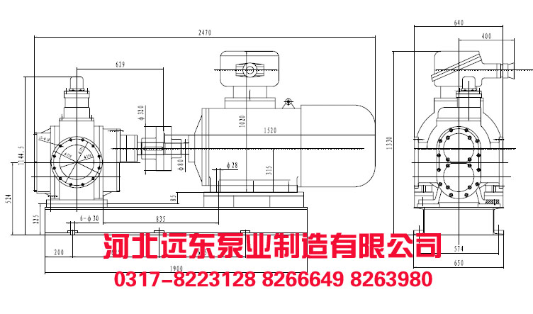 KCB3800齒輪泵安裝尺寸圖:流量228m3/h(3800L/min)壓力:0.6Mpa,吸入真空高度2米,效率44%,口徑250,配用電機功率:Y110KW-6