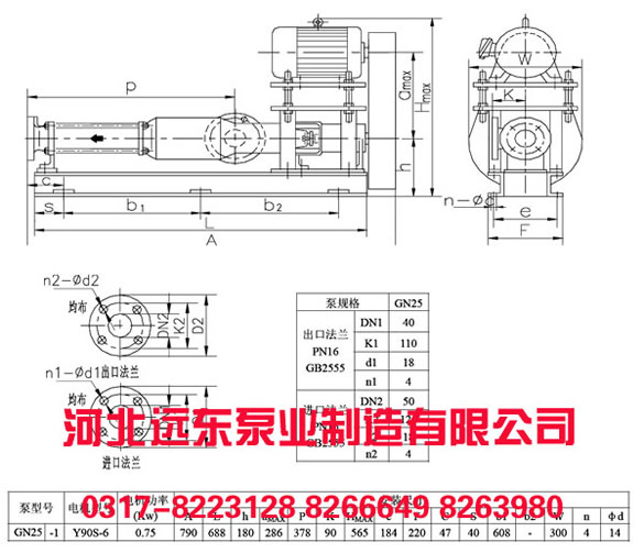 GCN25-1V-W101背包式單螺桿泵安裝尺寸圖配Y90S電機(jī)
